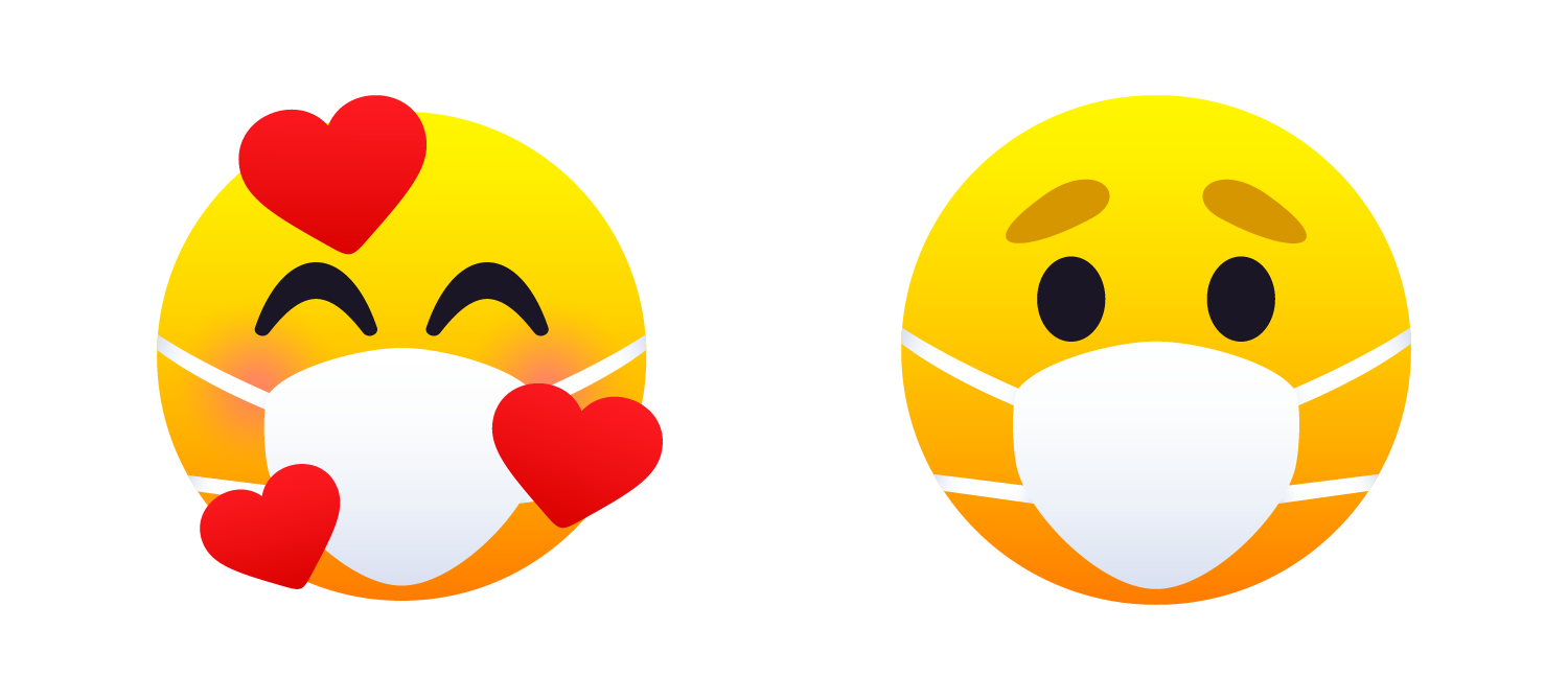 All Smiles 1.0 included two emoji that were ultimately promoted by Unicode 13.0 to official emoji in JoyPixels 6.0 (Smiling Face with Tear and Disguised Face). We've replaced them with two new additions: Smiling Face with Hearts with Face Mask and Worried Face with Mask, both exceedingly fitting creations for this 2020 release.