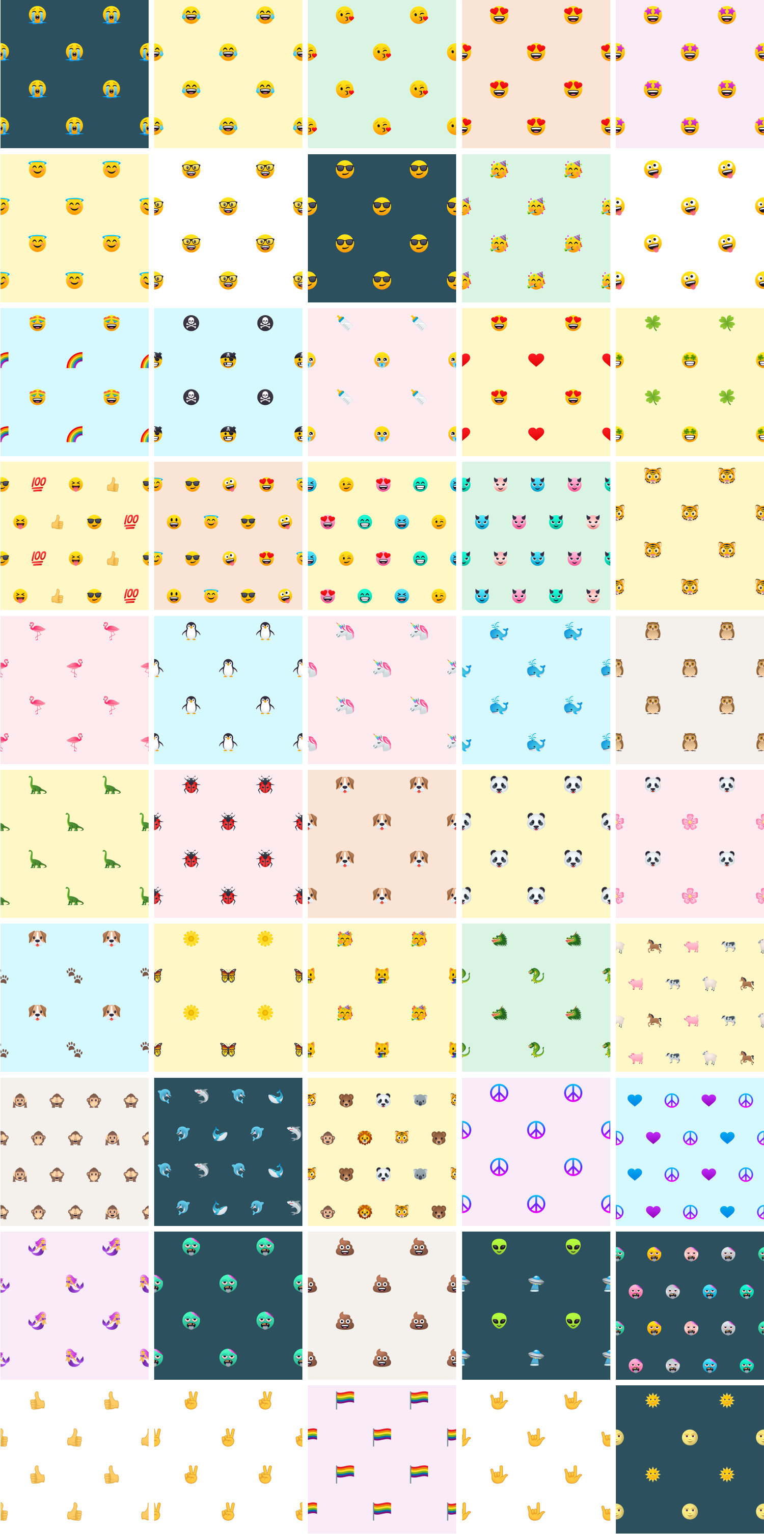 The JoyPixels team has been hard at work over the last six months, developing a completely new product for the world of emoji licensing. Introducing Emoji Patterns by JoyPixels. We've taken all of our best-loved emoji and created 100 new patterns, each presented in four styles, in an array of background colors that contrast and compliment. These seamless vectors were designed for ease of use and are now available for custom licensing.