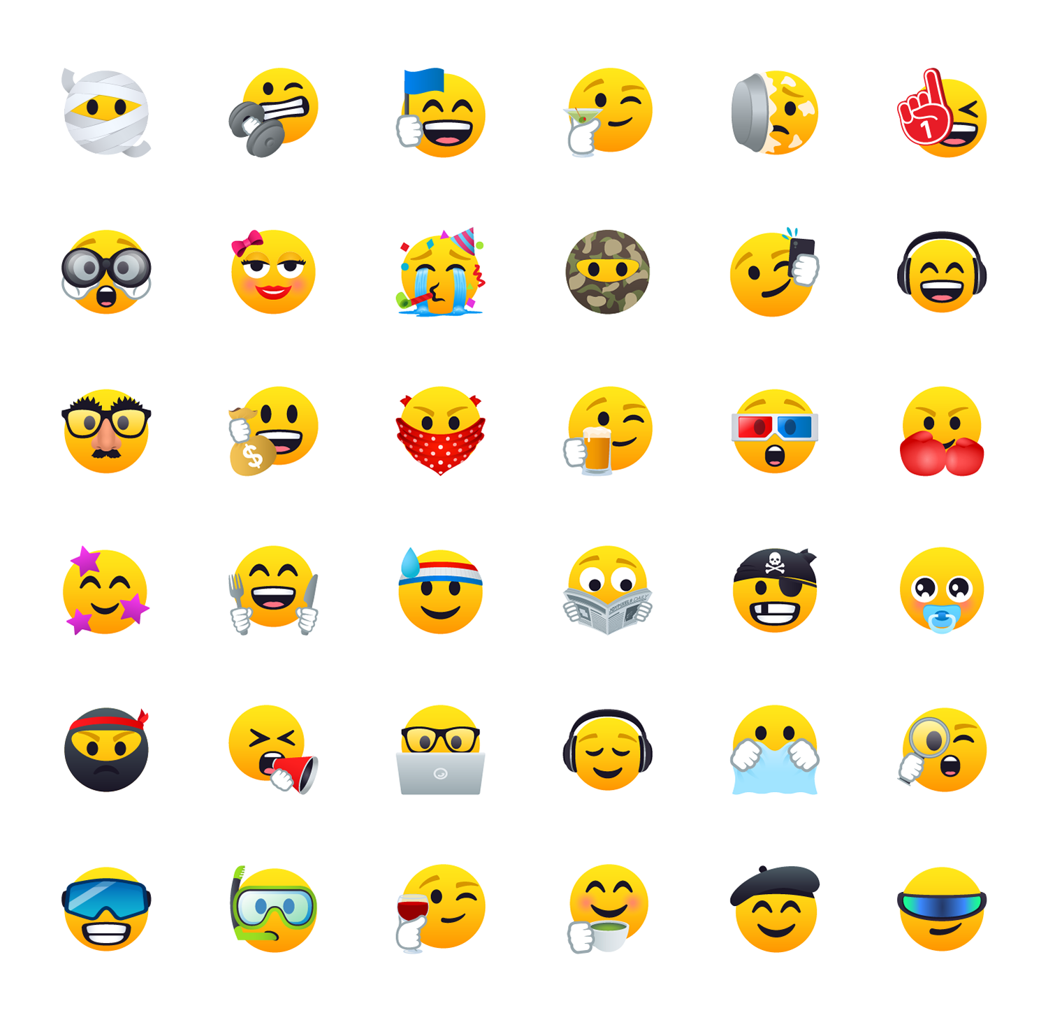 All Smiles 1.0 includes 200 entirely new emoji designs. These smileys are more expressive than ever before, with fun faces, dramatic gestures, and intriguing accessories. With all variants included, this works out to over 2,100 entirely new icons!