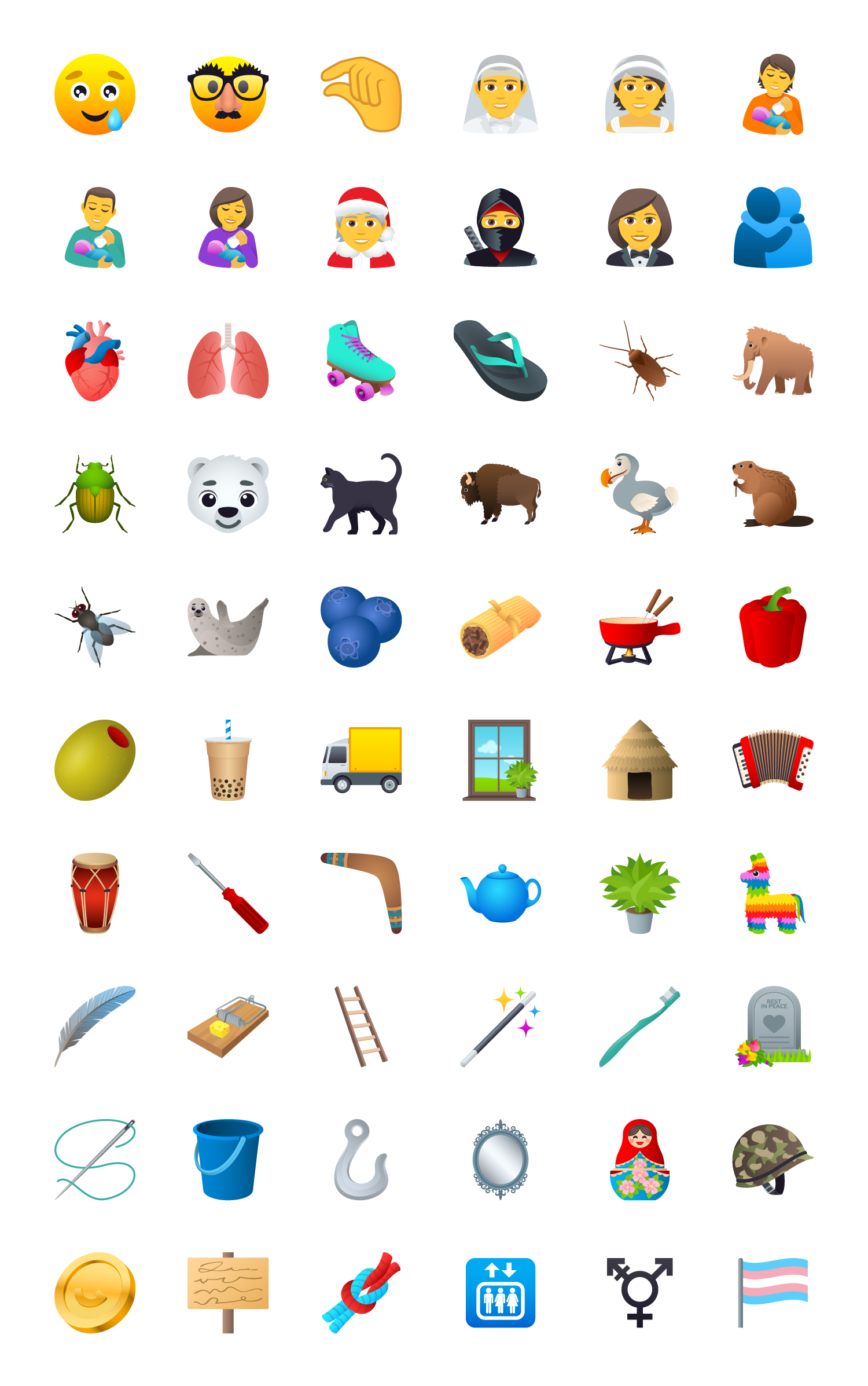 Variations of existing emoji are now available to even more of our people, including Woman in Tuxedo, Man in Veil, Person in Veil, and a gender inclusive Mx. Claus. Additionally, the Woman, Man, and Person Feeding Baby were added, as well as a Ninja emoji. Note that all people emoji and variations are available across all diversities.
