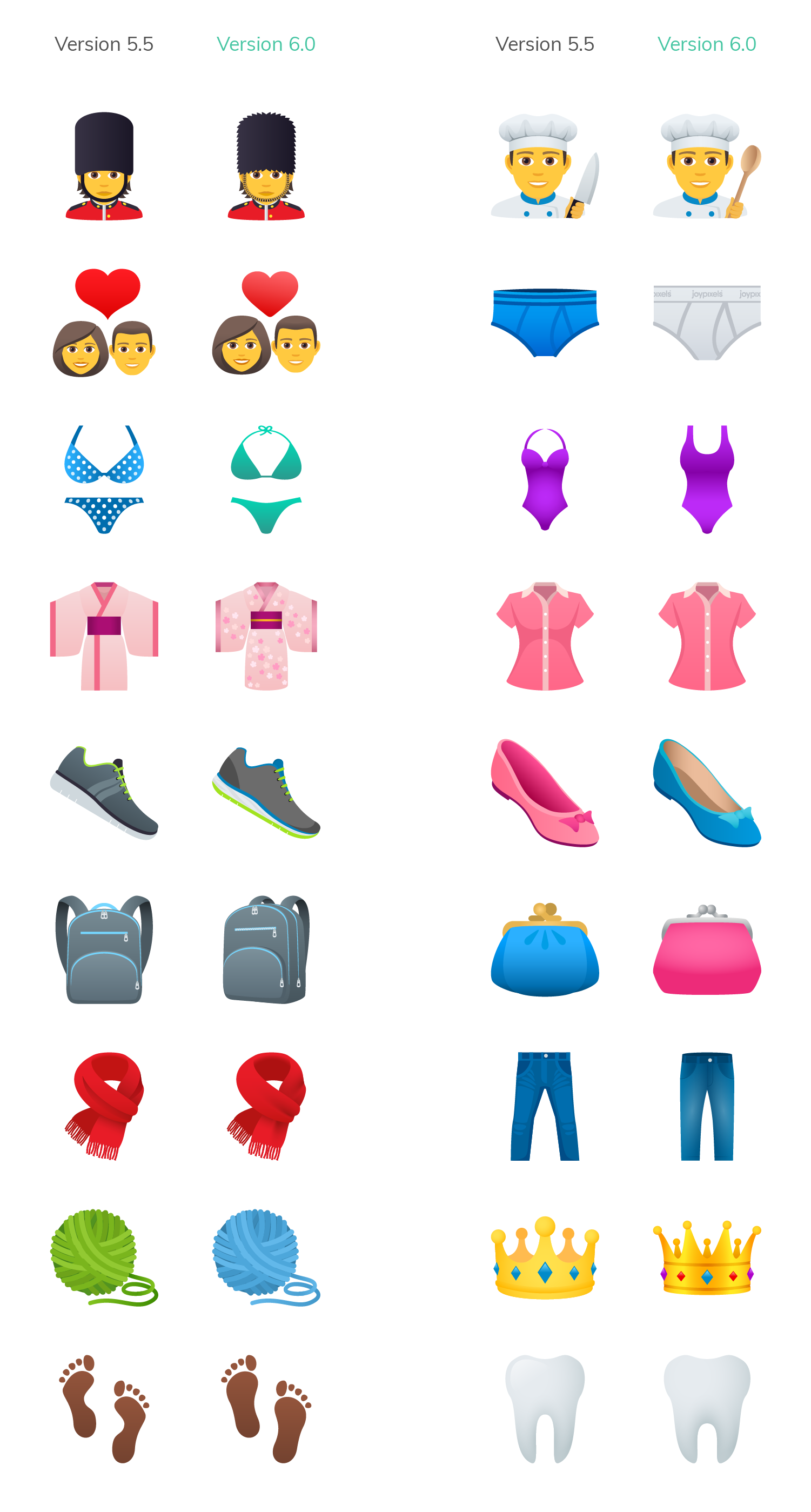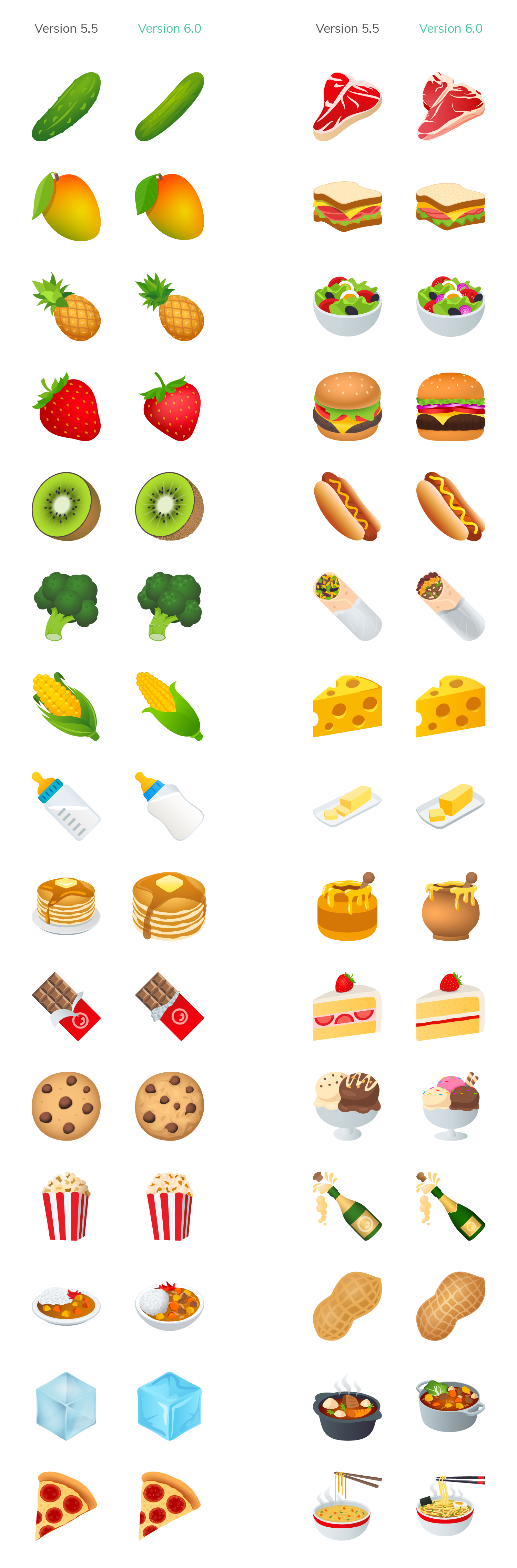 Perhaps the most sweeping changes of JoyPixels 6.0 can be seen in our animal emoji. We embraced the "cute" or "kawaii" style, with adorable, big eyes and sweet little smiles. The designs are altogether friendlier and appealing to child and adult markets, alike.