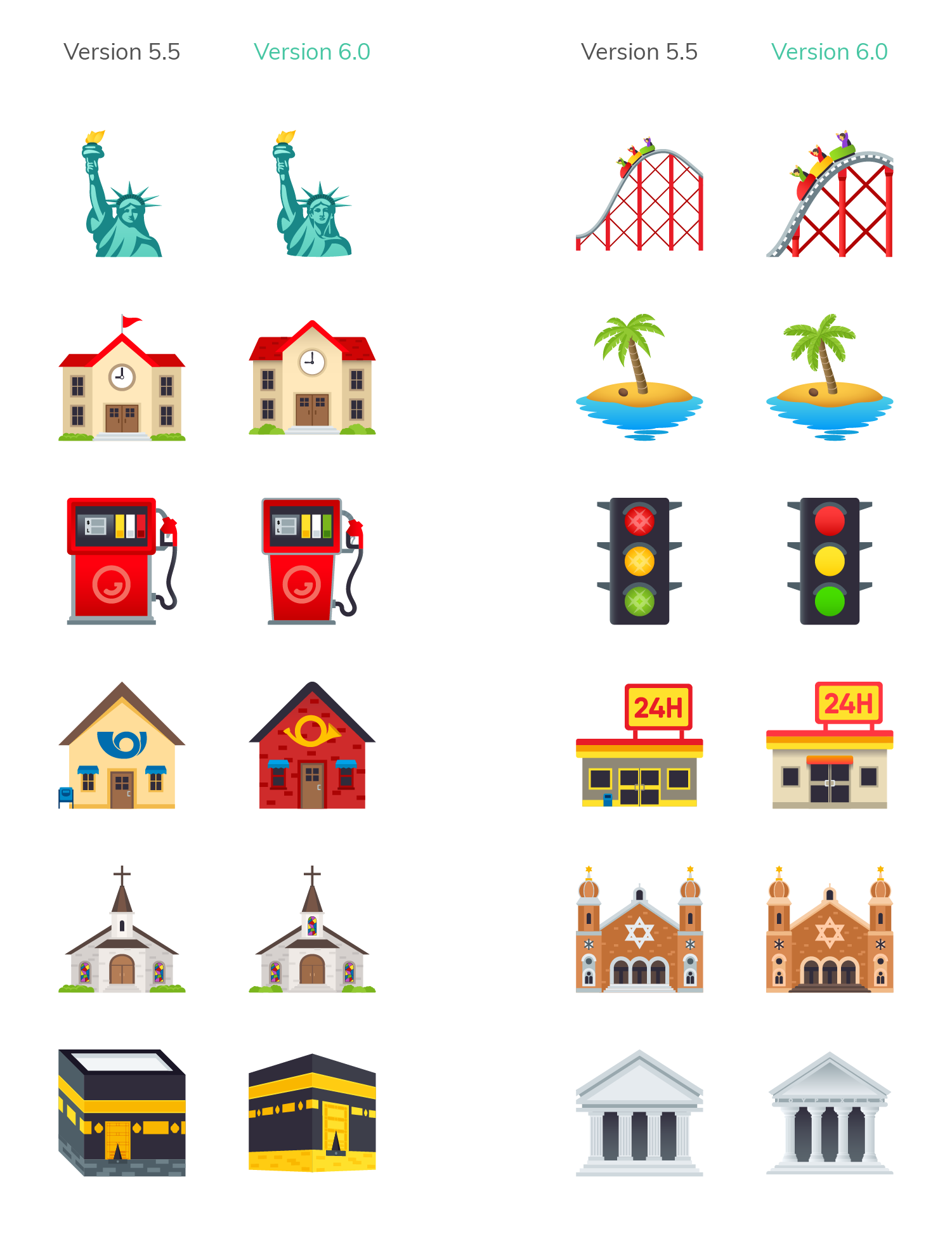 A number of changes were made to our smileys in JoyPixels 6.0, including thickened, reshaped eyebrows. Our Smiling Face with Horns and Angry Face with Horns emoji have never looked fiercer and our Face with Medical Mask includes an updated mask style more in line with masks worn publicly in 2020. More subtely, you'll notice deepened colors across the gradients, as well.
