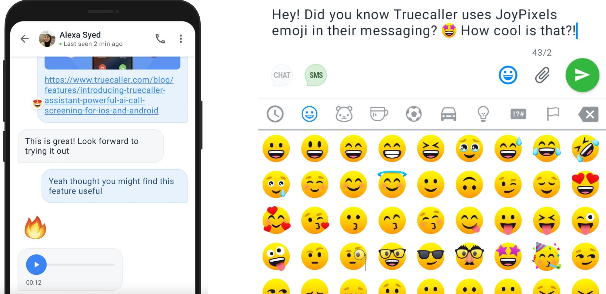 Caller identification and spam-blocking application Truecaller licenses JoyPixels emoji for use within the application's communications tools. Users can leverage emoji to enhance their text-based experience within the app.