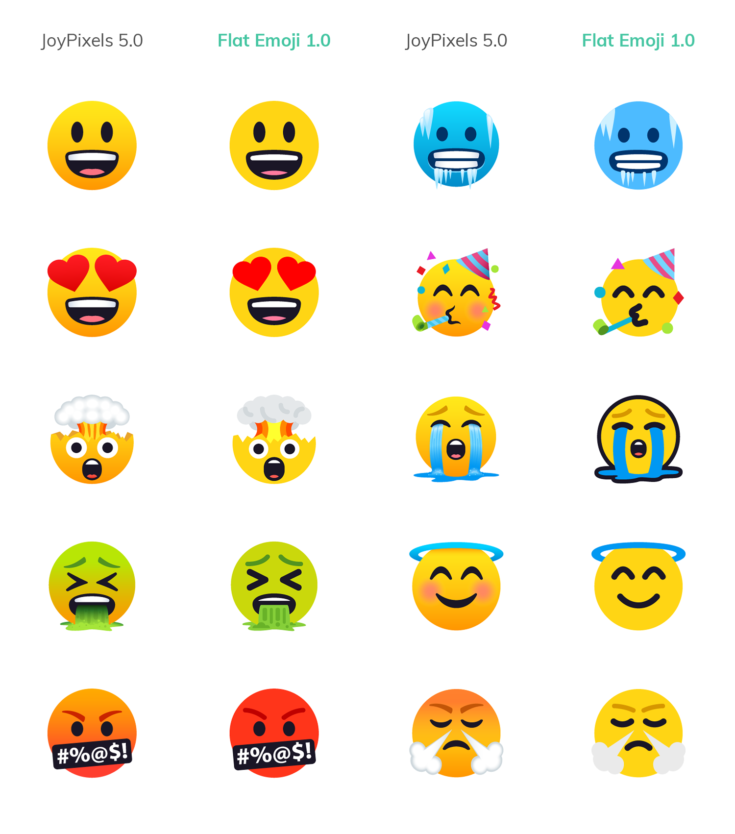 JoyPixels’ design roots were planted in flat design when we first took pen to paper (or mouse to Illustrator perhaps) in 2014. Over the years, styles have shifted and 2019’s JoyPixels 5.0 Signature Set features a soft gradient that is at the forefront of today’s design trends. Still, while we adore the gradient details in our latest set, there’s no denying the beauty and simplicity of flat design. To that end, we’re excited to announce the arrival of our latest collection, Flat Emoji 1.0.