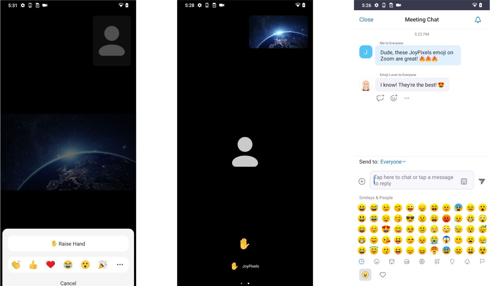 Zoom's integration of JoyPixels emoji can be experienced on PCs and non-Apple mobile devices, putting JoyPixels into the hands of millions of users worldwide.
